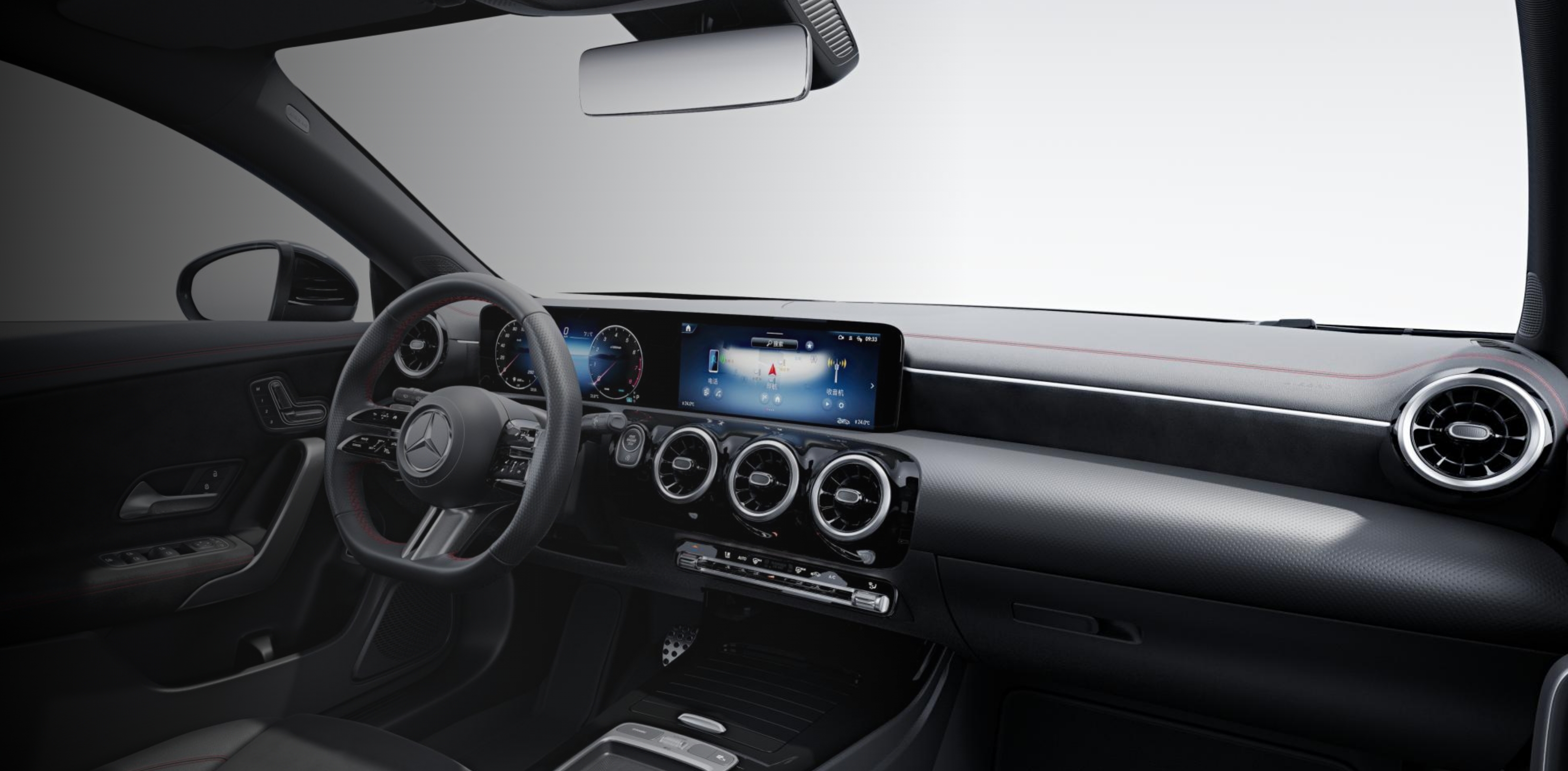 AMG运动风格内饰 - 握上Nappa皮饰多功能运动平底方向盘,踩下AMG金属踏板,配上红色双缝线内饰点缀,瞬间点燃沉默于你体内的车手基因,任你在梦想赛道中肆意驰骋。