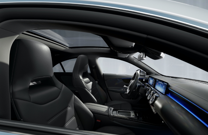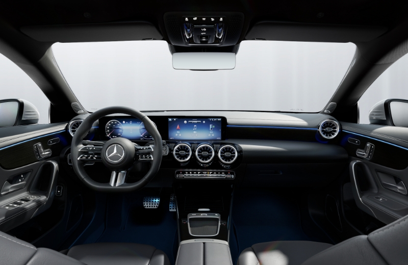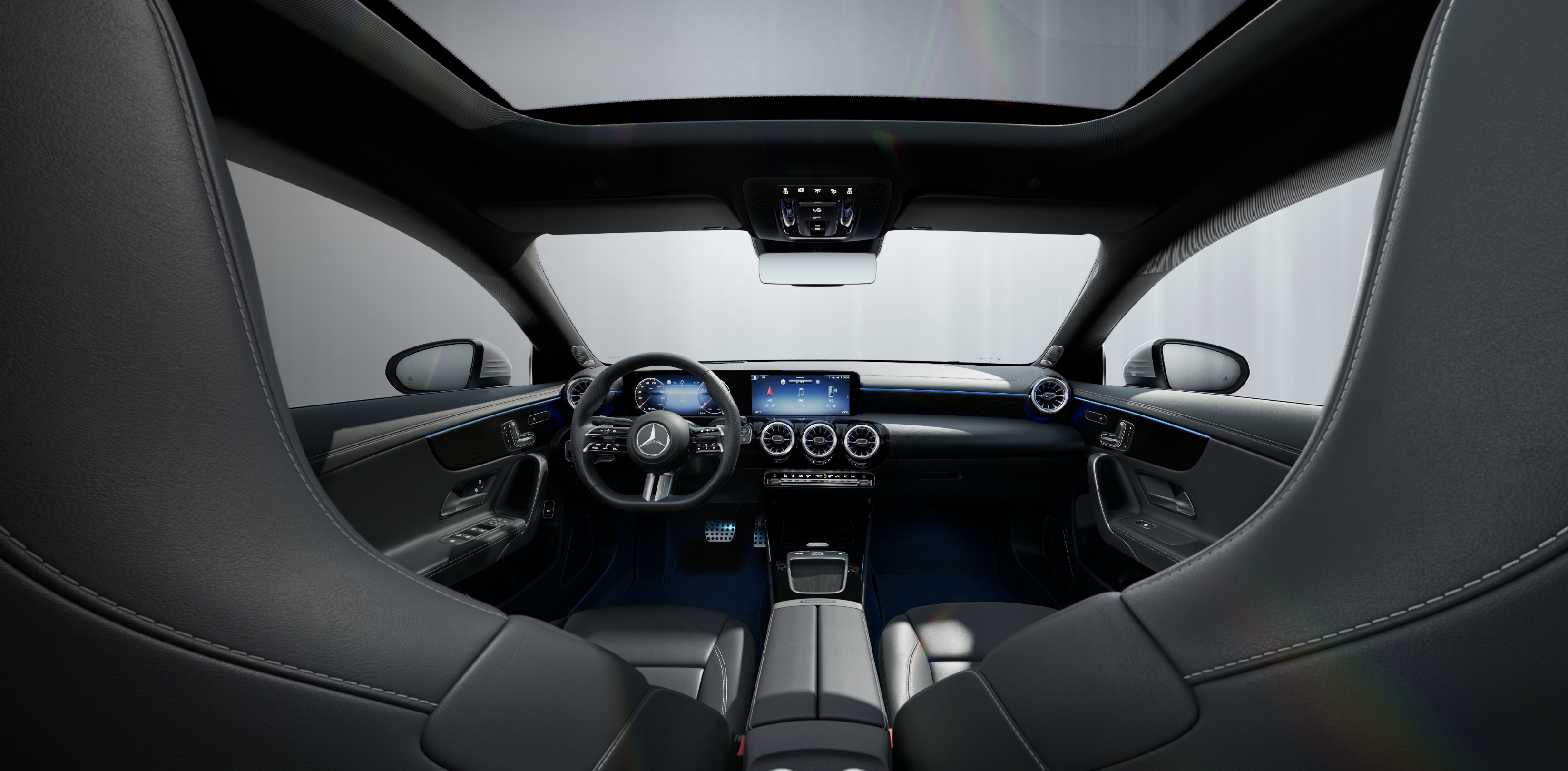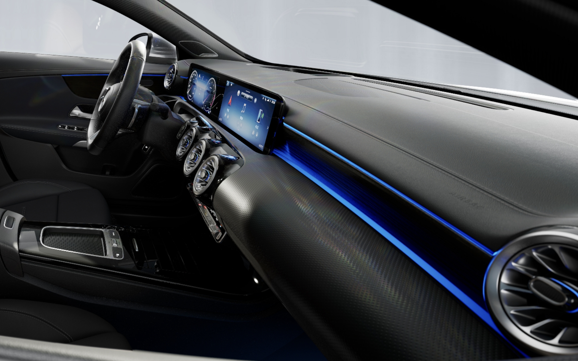 64色环境氛围照明系统 - 不必再随波逐流,新一代CLA四门轿跑车提供环抱四周的多样氛围组合,你要的独特美感,现在起由你随心定义。