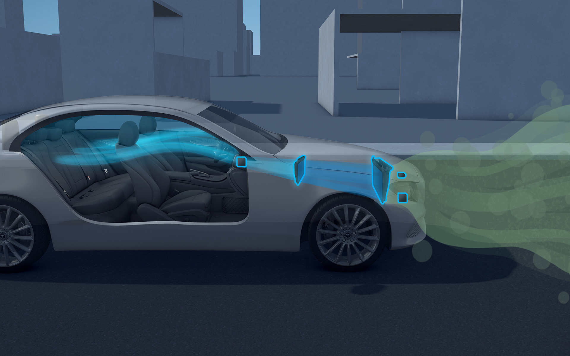 自动导流系统 - 标配敞篷轿跑车专属的AIRCAP®自动导流系统,只需按下一个按钮,拥有防尘网的前挡风板和后排头枕后的后挡风板即可向外展出,显著减少车内空气漩涡,让CLE敞篷轿跑车不止外形“拉风”,更能驾驭风的形状。