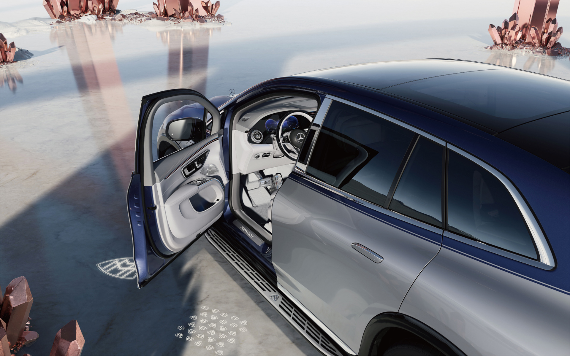 梅赛德斯-迈巴赫EQS纯电SUV极夜版组件, 于超前先锋的车身之上,融入摄人心魄的暗夜元素, 将至美至臻的不羁之魂,尽现于大胆果敢的SUV车身, 为特立独行的先锋豪华,再添超然美学的独到魅力。